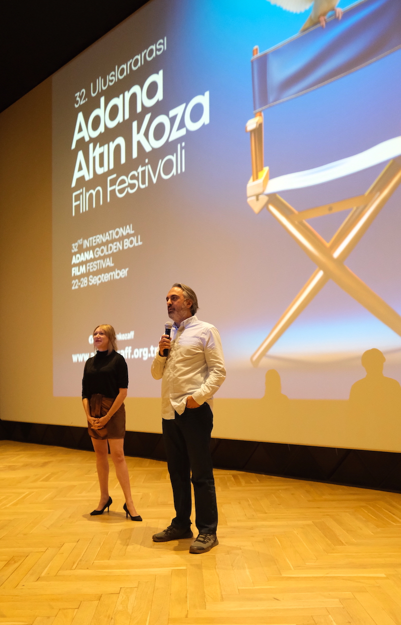 Taş” (2017) filminden sekiz yıl sonra sinemaya geri dönen Orhan Eskiköy’ün yönettiği Ev” (2025), dünya galasını festival kapsamında gerçekleştirdi. Yönetmen, heyecanını, “İlk filmimi de Adana’da Altın Koza’da göstermiştim. Şimdi sekiz yıl sonra yeniden burada olmak, ilk filmimi yapmış gibi hissettiriyor” sözleriyle paylaştı. Filmin çıkış noktasını ise şöyle anlattı: “Depremin birinci ayı dolmamıştı. Kıbrıs’ta battaniyenin altında ağlıyordum. O gün artık bir şey yapmam gerektiğini düşündüm. Film yapmayı bırakmıştım ama bu felaket beni yeniden sinemaya döndürdü.” Eskiköy, filmin amacını, “Bir belgesel sinemacı olarak geleceğe karşı sorumluluk hissediyorum. Daha büyük felaketler olacak. Bu film, seyircinin başına neler gelebileceğine dair bir fikir versin istedim” sözleriyle özetledi.